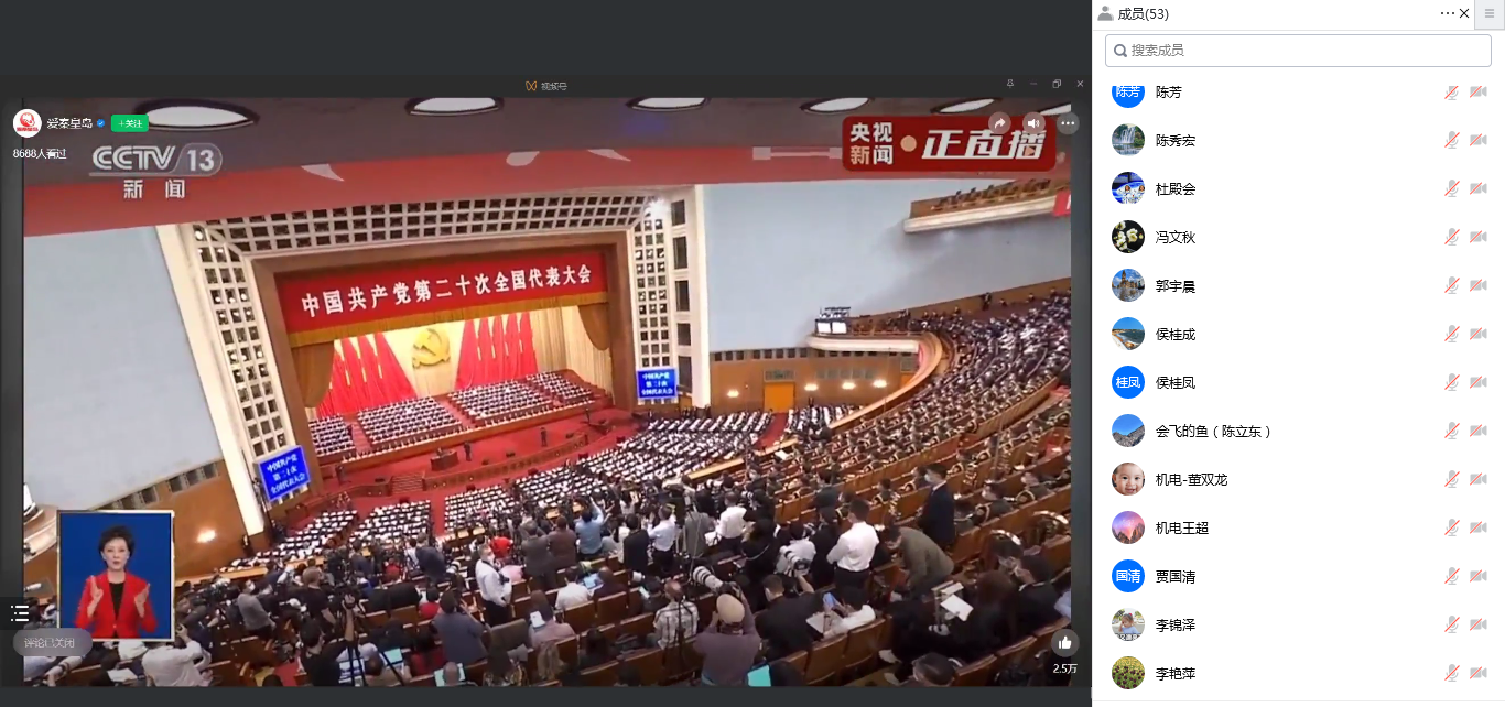 在学院四楼会议室,全体闭环内工作的教师和学生代表(瀚科宿舍楼每个楼层2-3名网格员)参加了线下集中收看和研讨交流,校图书馆副馆长盛子强参加了线下活动,同步召开了线上会议(腾讯会议号:819419946),全体环外教师参加了线上集中收看。未能参加集中收看的其他师生借助于电脑、手机或电视自行收听收看并发表了感言。