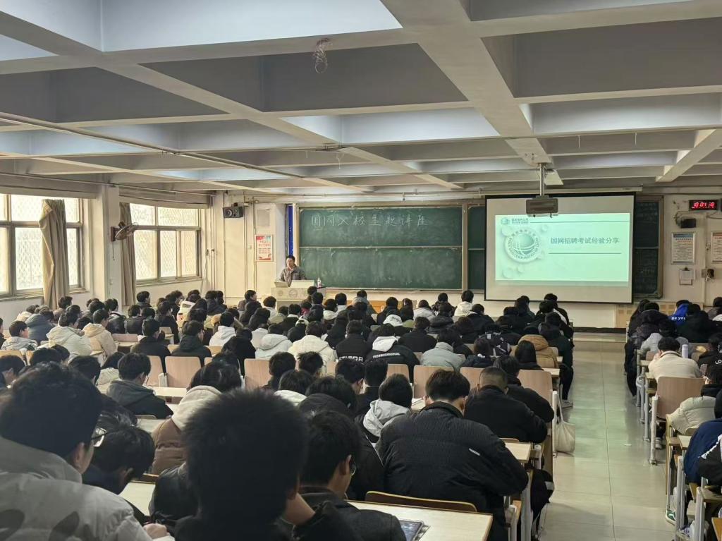 2024年12月5日,best365官方网站登录入口邀请国网秦皇岛供电公司张哲工程师,在1B105举办了“国网招聘考试经验分享讲座”,共有280名电气工程及其自动化专业同学参加。