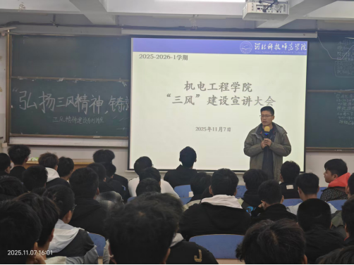 学院主管学生工作负责人结合机电工程专业的学科特点与发展前沿,深刻阐述了优良学风的重要性。他勉励同学们要明确学习目标,端正学习态度,掌握科学学习方法,培养实践能力和创新精神,同时要坚守诚信底线。