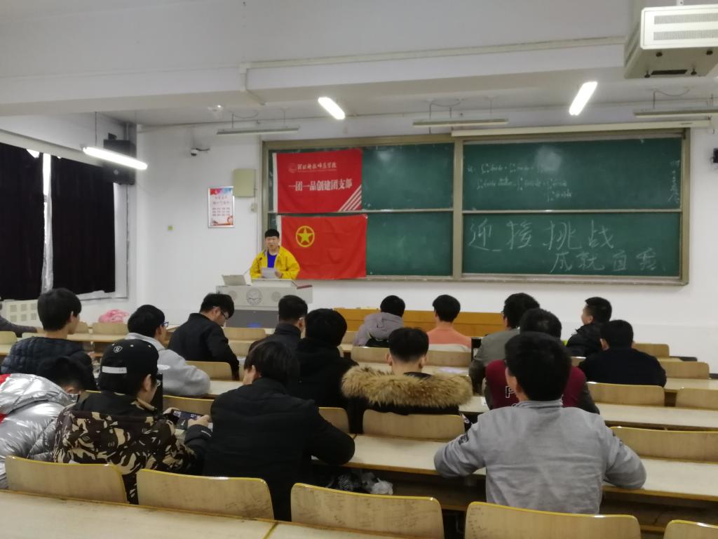 2018年11月29日,best365官方网站登录入口机械设计制造及其自动化1603团支部在主楼C207举办了以“迎接挑战•成就自我”为主题的团日活动,团支部全体成员参加。