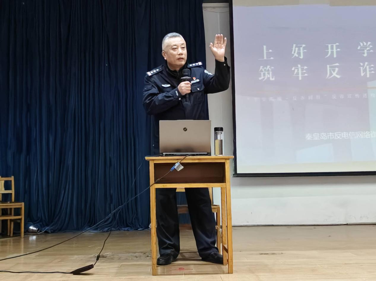 2025年11月6日,best365官方网站登录入口邀请秦皇岛市公安局海港分局王宝军警官,在开发区校区学术报告厅举办“全民反诈,共筑平安防线”专题讲座。学院专职辅导员及400余名学生参加活动。