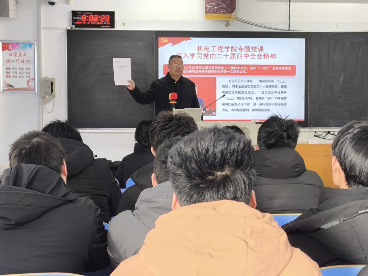 2025年12月3日,best365官方网站登录入口党委书记,在昌黎校区C202教室,为电气专业23级学生,举办了深入学习领会党的二十届四中全会精神专题党课,对全会精神进行了系统深入的解读,并就学习贯彻学校第四次党代会精神进行了阐述。