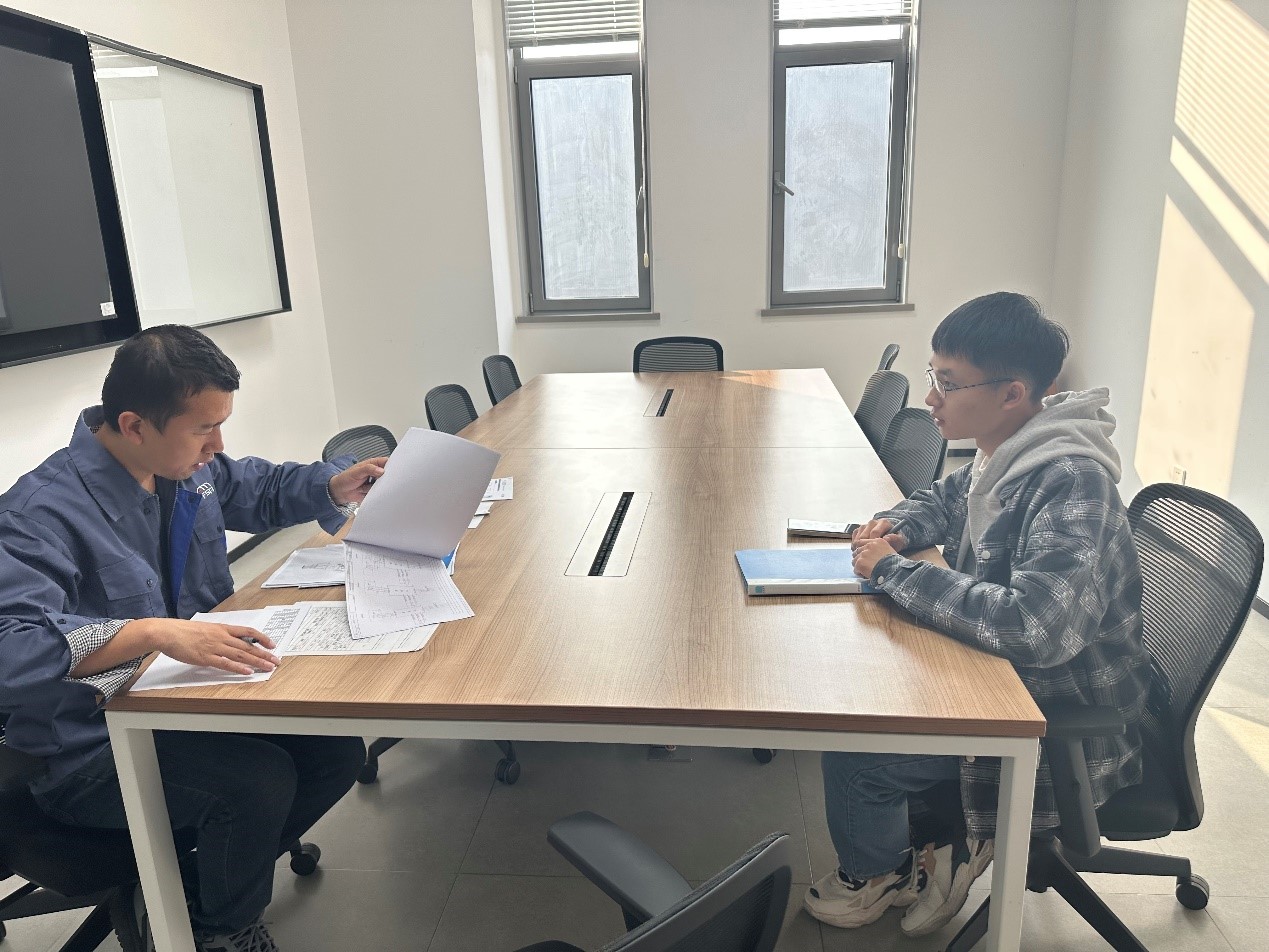 最后,同学们进行了面试。面试分为自我介绍、专业测试和综合评估等环节,学生们充分展示了自己的专业素养和综合能力。企业对我院学生的优异表现给予了高度评价,准备与12名同学签订就业协议。经过参观与面试,学生们不仅拓宽了视野,增强了专业认同感,还对自己的专业发展方向和远景有了更清晰的认识。